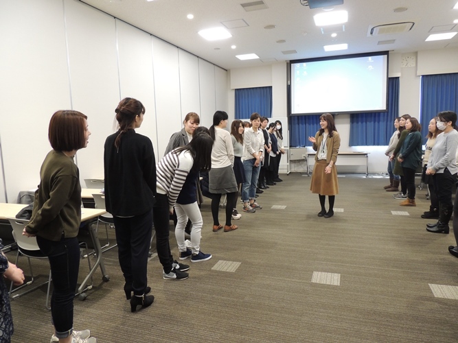 同期と仲良くなって頂くために、「ジェスチャーだけで名前順に並ぶワーク」や「グループごとに物語を作るワーク」などを行いました。