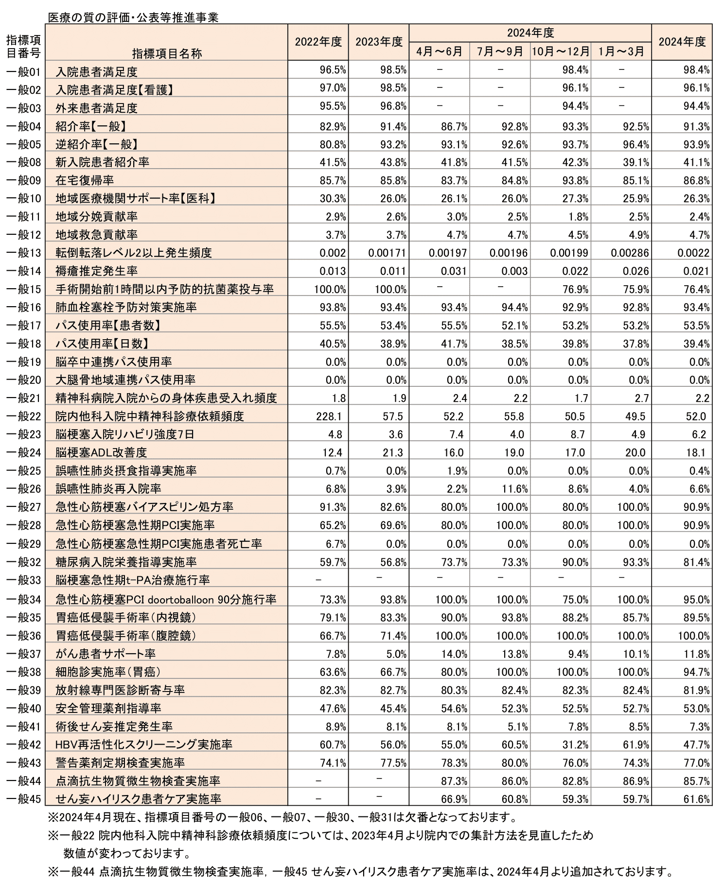 より質の高い医療を提供するためには、病院の取り組みを分析・評価し、一般の方に公表することが重要と考えています。当院は全国自治体病院協議会 「医療の質の評価・公表等推進事業」に参加しています。